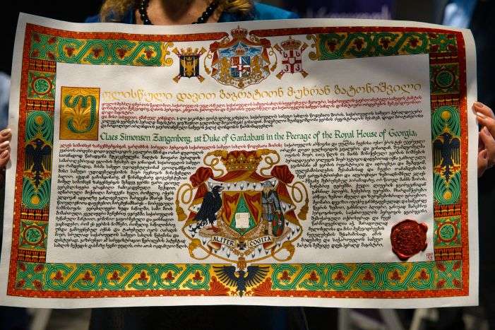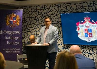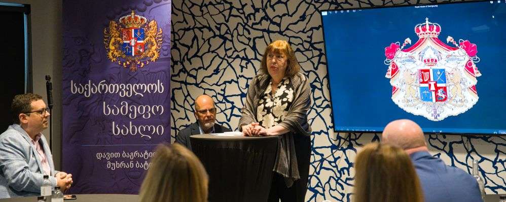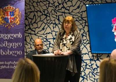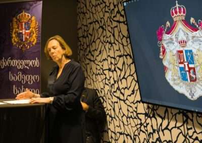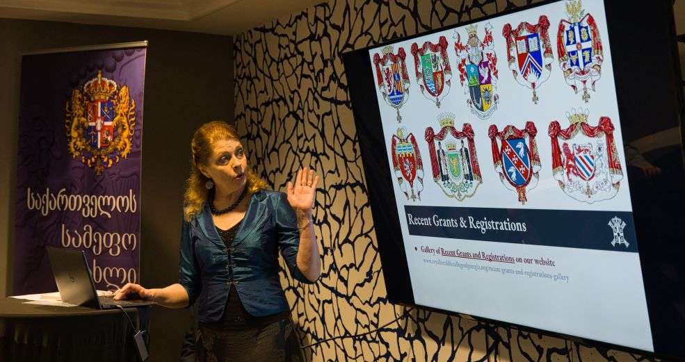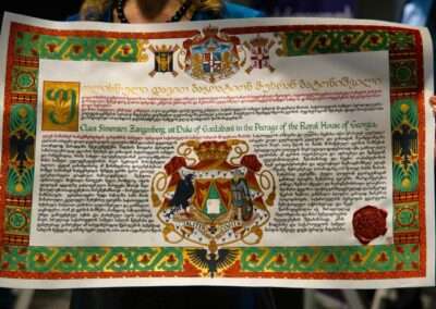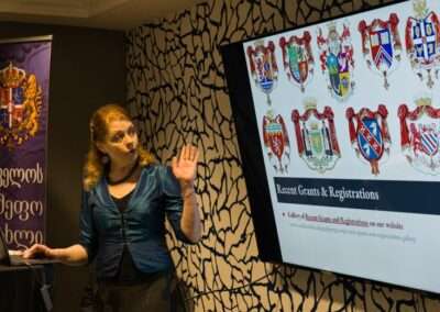 Further contributions included a presentation by Royal Heraldic Artist Tania Crossingham on the Royal Heraldic College of Georgia, highlighting its role and ongoing work. Tania also unveiled her latest work on the Letters Patent of the heraldic grant for the Duke of Gardabani.